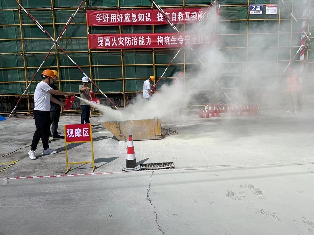 2023年6月是全國第22個(gè)“安全生產(chǎn)月”,為深入貫徹落實(shí)習(xí)近平總書記關(guān)于安全生產(chǎn)重要論述,嚴(yán)格落實(shí)集團(tuán)公司關(guān)于安全生產(chǎn)各項(xiàng)規(guī)定,進(jìn)一步強(qiáng)化公司整體消防應(yīng)急救援綜合能力。6月8日下午,集團(tuán)公司在齊云府六期項(xiàng)目開展“人人講安全、個(gè)個(gè)會應(yīng)急”消防安全應(yīng)急演練活動。項(xiàng)目安全員開展消防器材的使用、撲救初起火災(zāi)疏散逃生等消防安全常識的培訓(xùn)。以通俗易懂的方式,深刻警示全體員工要提高對消防安全的重視。